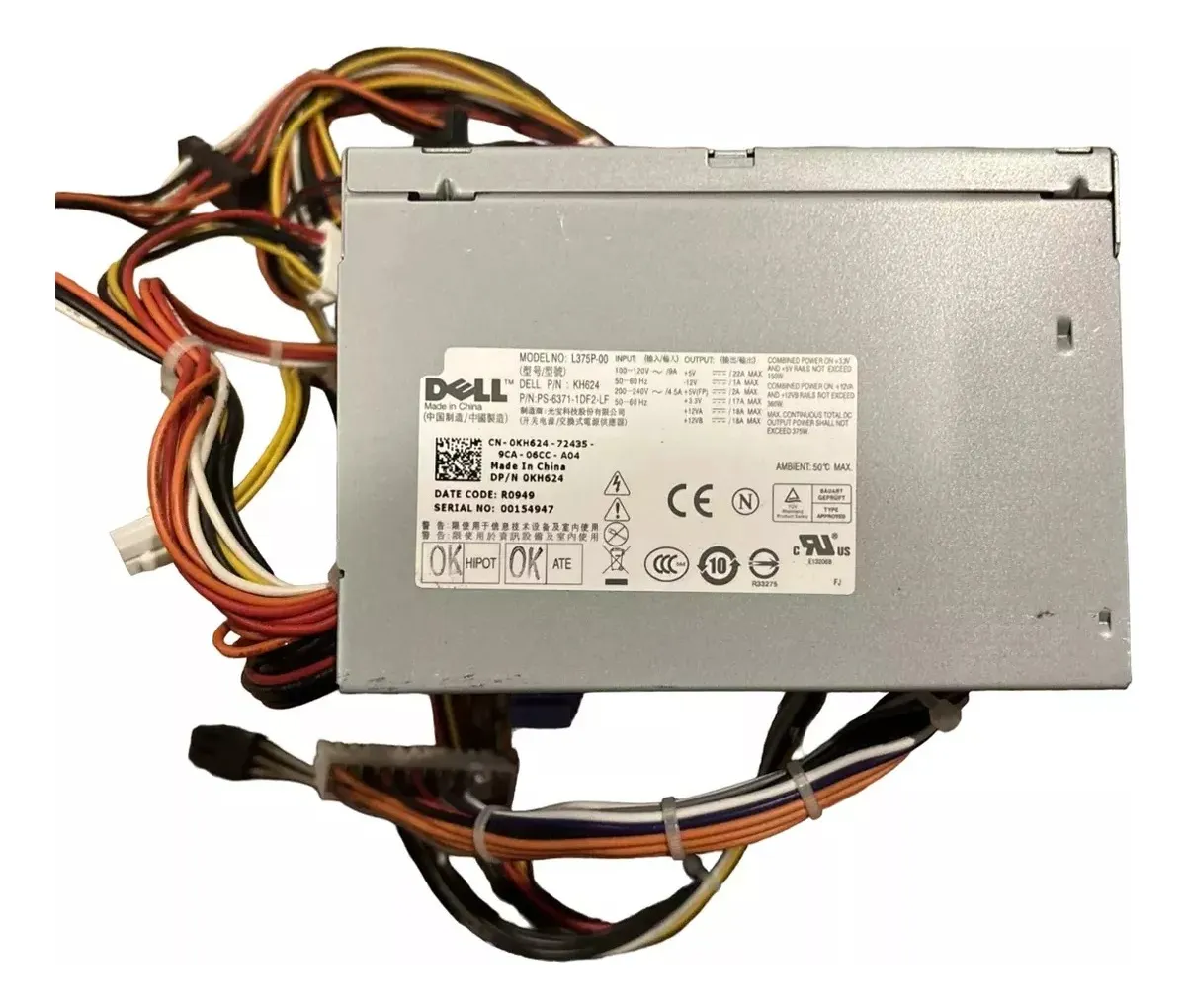 Fonte Dell 375w Para T3400 L375p 0kh624 Kh624