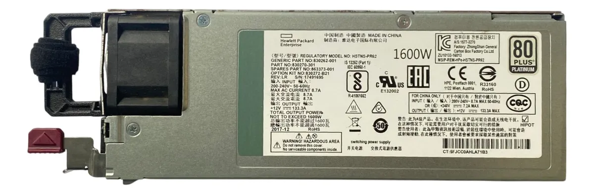 Fonte Hp 1600w P/ Dl380 G10 830270-301 830262-001 863373-001