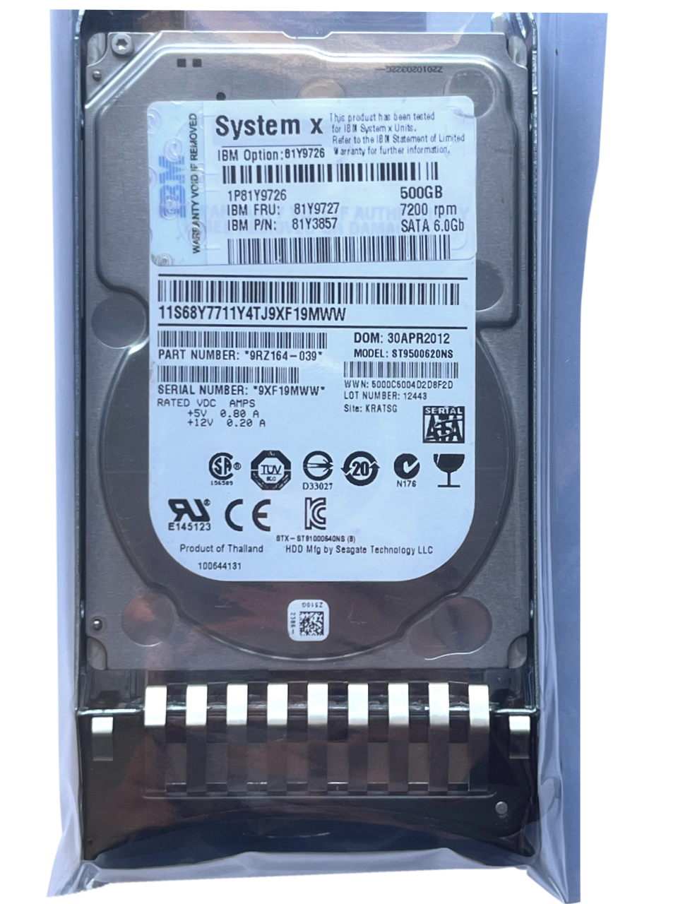 HD IBM 500GB 7.2K 2,5 SATA 6GBPs 81Y9727 81y9726 81y3857 @